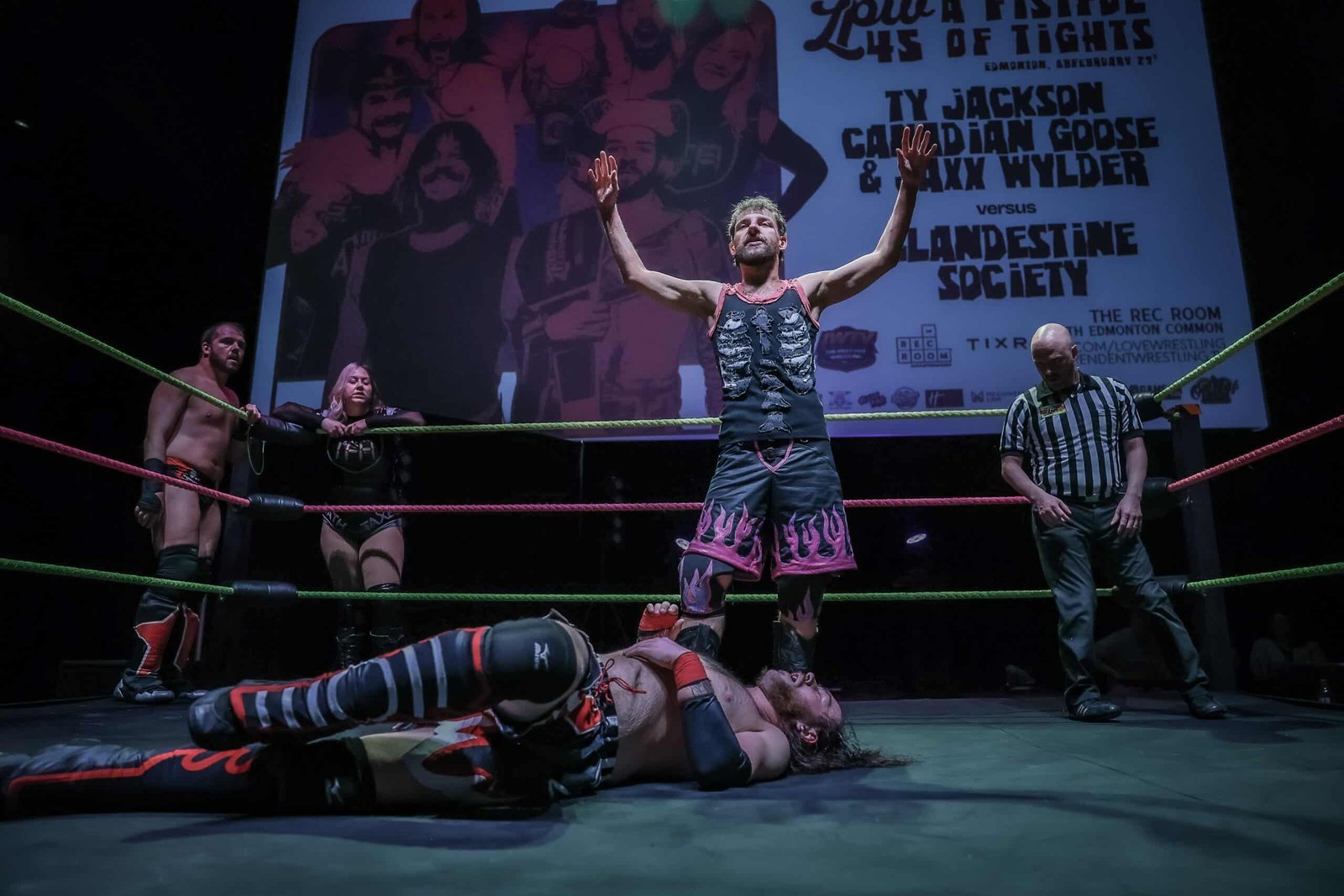 The Clandestine Society (Michael Richard Blais, Taryn From Accounting, and Steven Crowe) def. TY Jackson, Jaxx Wylder, and The Canadian Goose